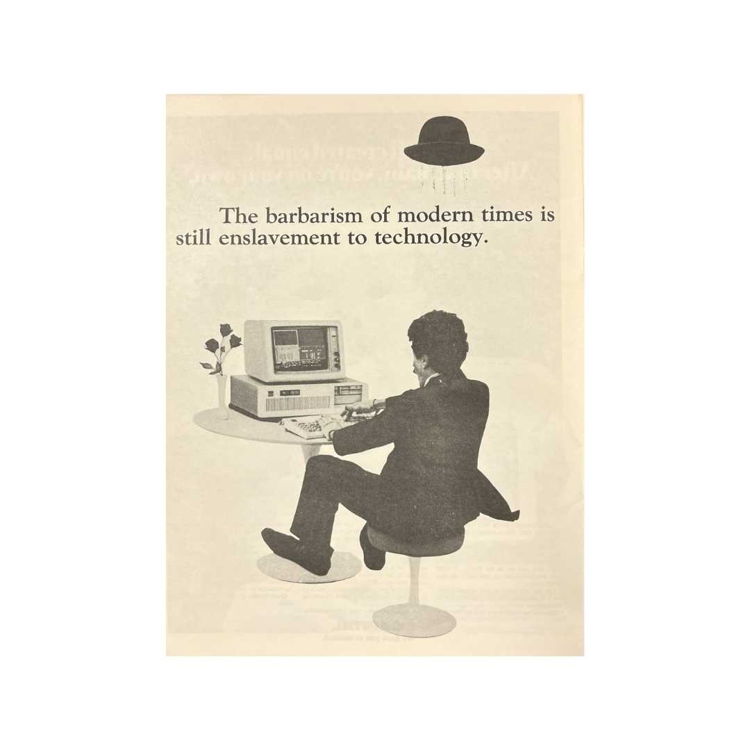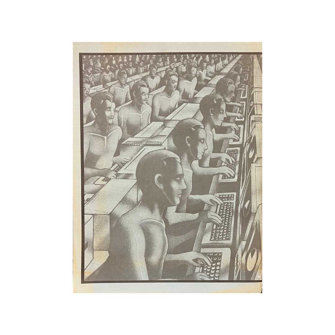 A collection of Situationist-influenced political art - collage and mock advertising - focused on critiquing capitalism and technology. Culled from ’81-’85 by “Anti Authoritarians Anonymous” and published by Oh! Press in San Francisco. Condition is very good, despite brown toning on cover